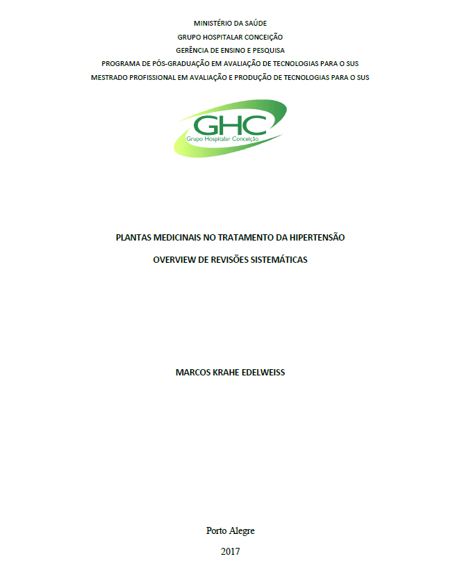 Métodos: Foi realizado um overview de revisões sistemáticas. Uma busca abrangente na literatura foi conduzida em 9 bases de dados, abrangendo publicações de 2006 a novembro de 2016. Foram selecionadas revisões sistemáticas (RS) que estudaram o efeito de plantas medicinais no tratamento de pacientes hipertensos. Os desfechos pesquisados foram: morbimortalidade cardiovascular, efeito anti-hipertensivo, qualidade de vida e efeitos colaterais. As RS foram avaliadas pelo questionário AMSTAR.