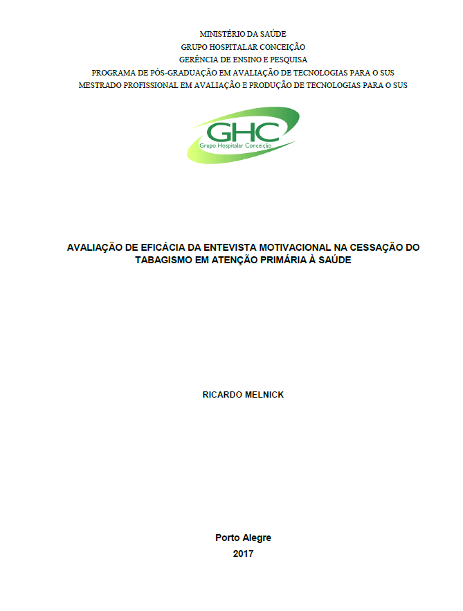 Introdução: O tabagismo é um fator de risco de grande magnitude na saúde pública, com forte associação às doenças crônicas não transmissíveis e grandes prejuízos econômicos e sociais. É considerada a principal causa de morte evitável no mundo. A atenção primária à saúde é um cenário estratégico no tratamento deste problema, portanto é necessária a avaliação de novas tecnologias para o manejo desta patologia neste contexto. A motivação é o principal fator envolvido na cessação do tabagismo.Há necessidade de avaliação e desenvolvimento de tecnologias para aumentar o grau de motivação. A Entrevista Motivacional (EM) é um método comunicativo, centrado na pessoa, cujo objetivo é trabalhar e aumentar a motivação para mudança de comportamento.Objetivos: O objetivo deste estudo foi avaliar a eficácia da EM nas taxas de cessação do tabaco dos grupos de tabagismo realizados pelas equipes de atenção primária do Grupo Hospitalar Conceição, e também se há aumento nas médias de comparecimento às sessões e nataxa de conclusão dos grupos.Metodologia: Foi realizado um ensaio clínico randomizado comunitário nas 12 unidades deste serviço, entre julho de 2016 e maio de 2017, com randomização por cluster. No grupo intervenção, os coordenadores de grupos de tabagismo em suas unidades receberam um treinamento de 8 horas em EM, para associar a técnica à abordagem convencional, enquanto as unidades do grupo controle utilizaram apenas a abordagem convencional cognitivo-comportamental. Resultados: durante este período foram realizados 44 grupos, totalizando 329 pacientes (178 no grupo intervenção e 151 no controle). A taxa de abandono do tabaco no grupo que utilizou a EM foi 61,8%,com um RR=1,25 (IC=95%1,01-1,54, p=0,043), e no grupo convencional 47,7%. A média do número de sessões foi 3,1 no grupo intervenção e 2,9 no controle. O percentual de conclusão do grupo, com a intervenção foi 65,2% e no controle 57,6%Conclusão: A entrevista motivacional mostrou eficácia e superioridade sobre a abordagem convencional. Embora o aumento tenha sido modesto, foi significativo estatisticamente. É uma tecnologia leve, de fácil aplicabilidade, custo-efetiva e adequada à atenção primária e grupos de tabagismo. Apresenta-se como uma estratégia de utilidade no enfrentamento da epidemia do tabagismo.